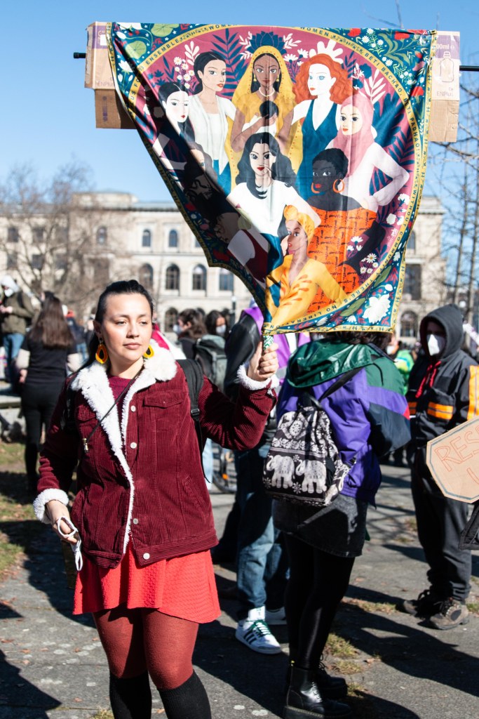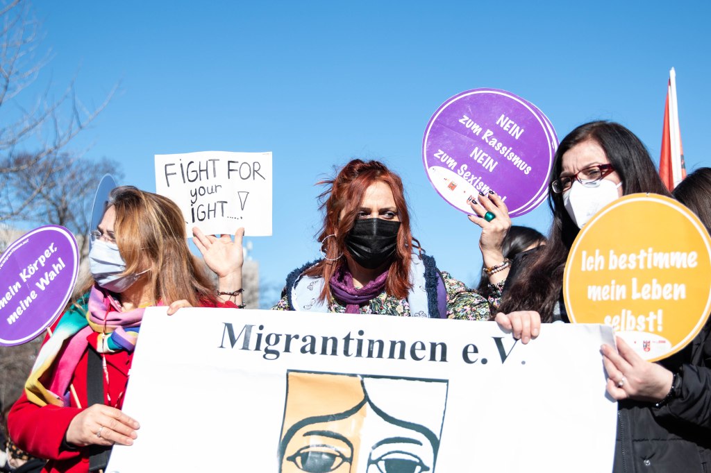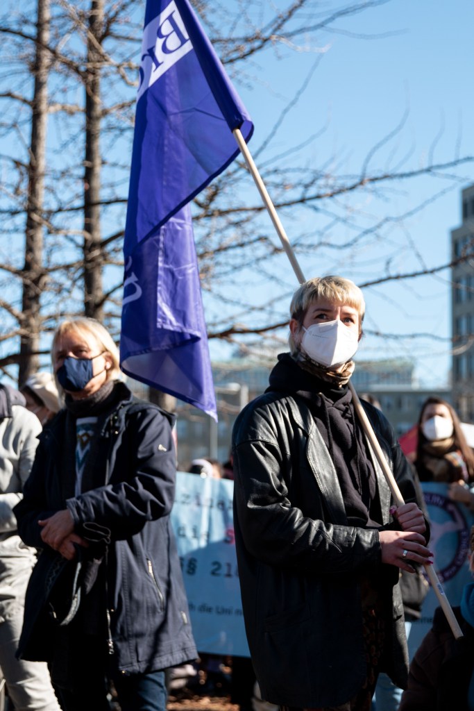 On March 8, 2021, thousands of women* and allies took Berlin’s streets to protest against patriarchy, capitalism, and racism. In the context of the Covid-19 pandemic, a strong focus was given to the recognition of care-work. At 11:00, a rally was organized by feminists and care workers to highlight their common struggle.