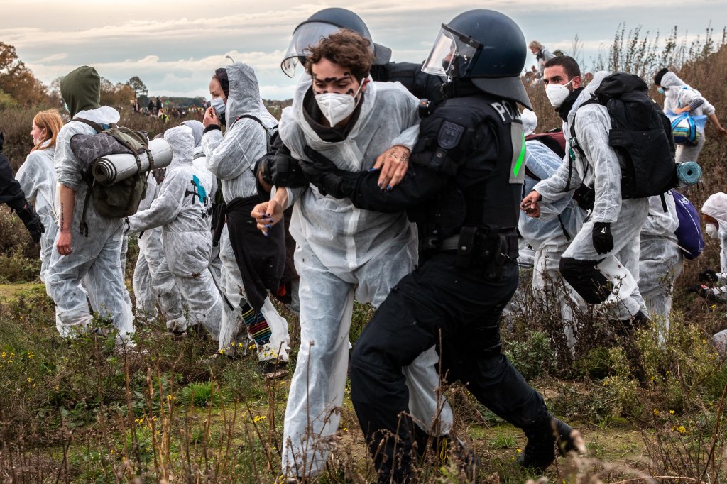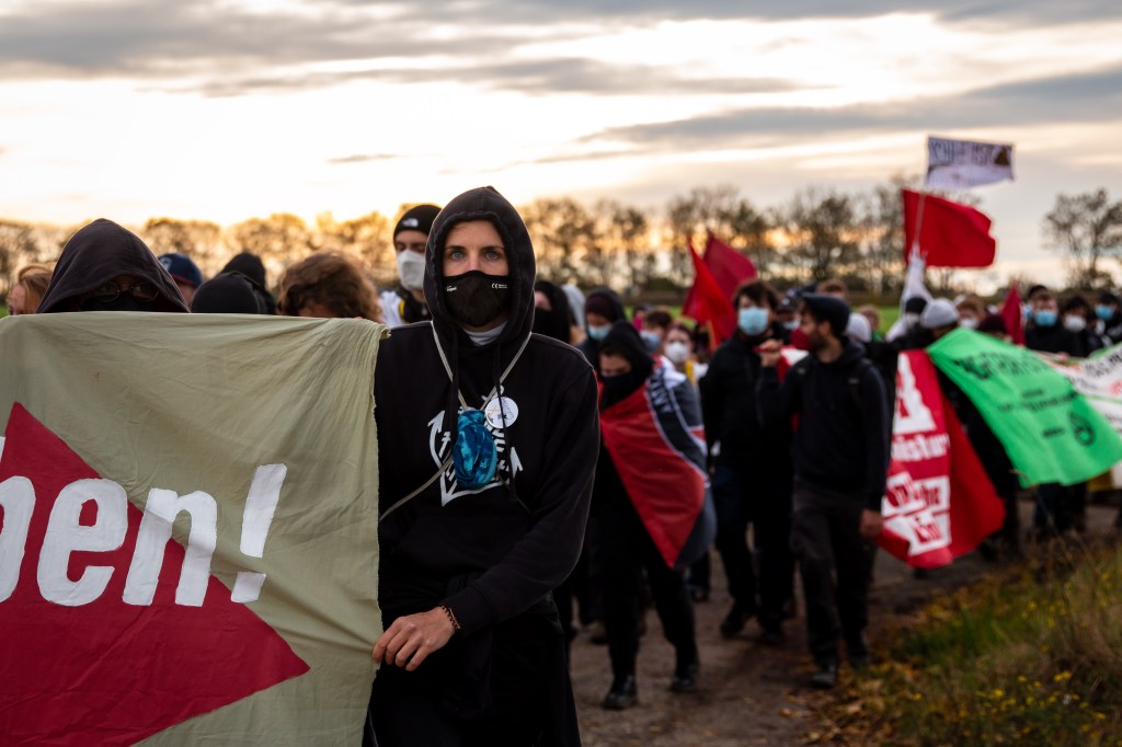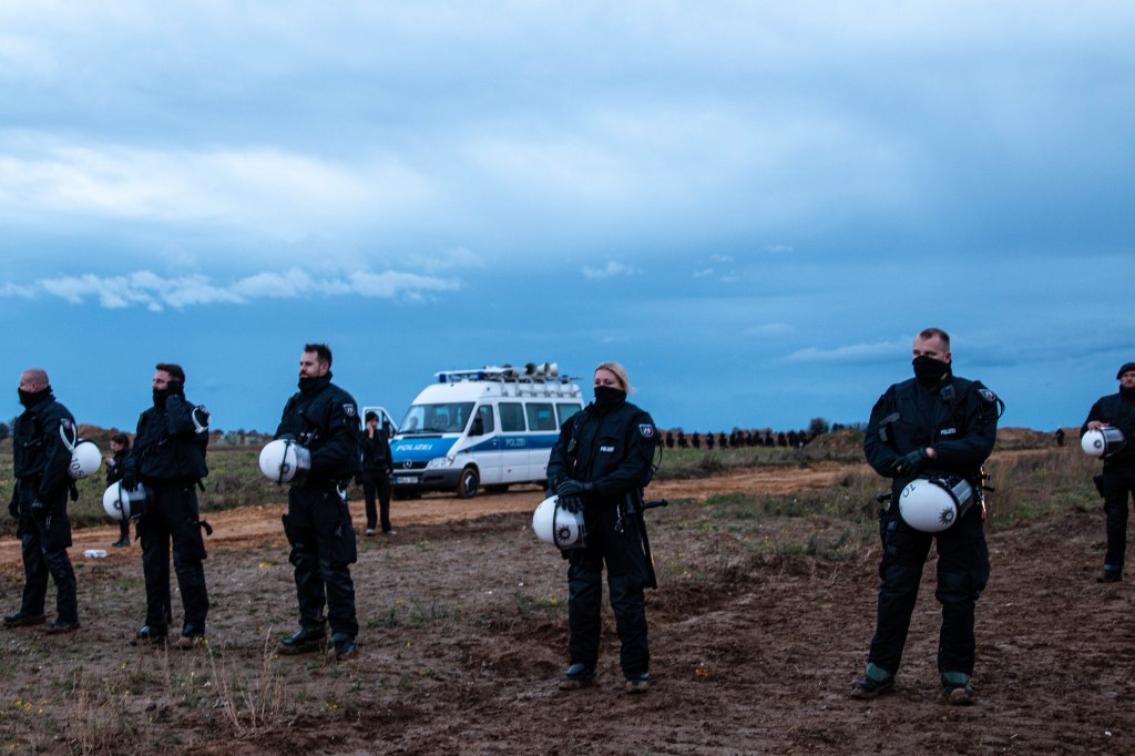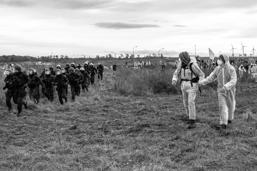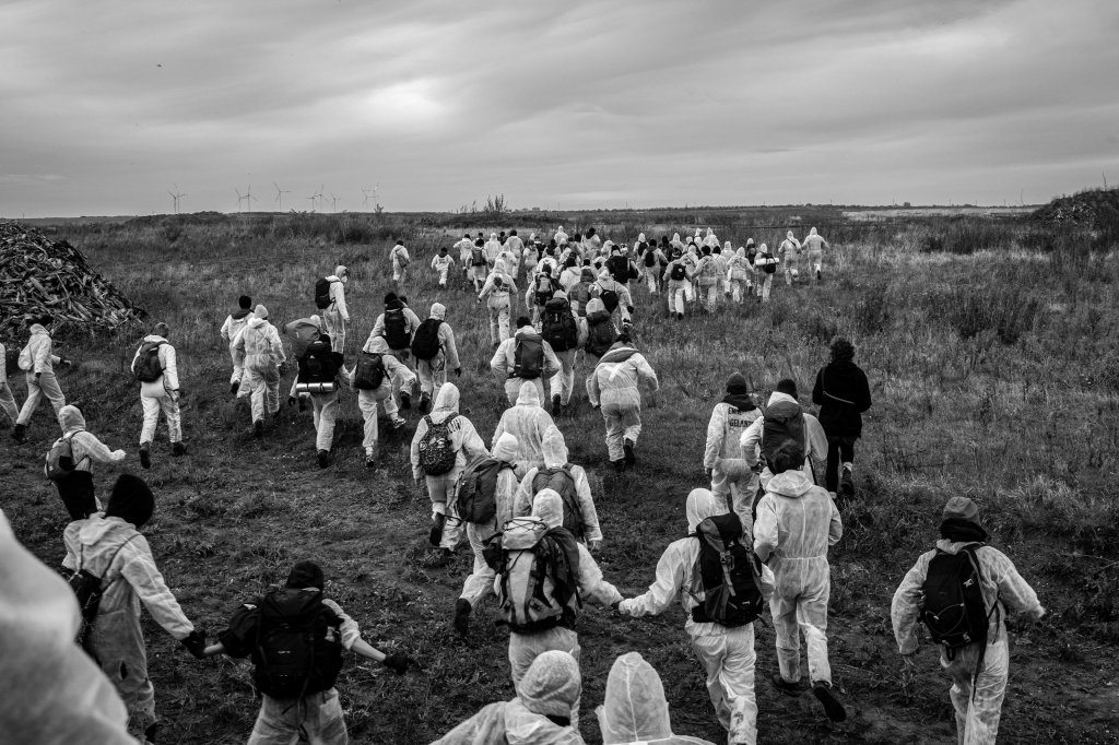 On october 31st, 2021, nearly 4,000 climate activists gathered in Lützerath to protest the village’s planned destruction in order to expand an enormous coal mine. Greenpeace, Extinction Rebellion, Fridays for Future and local collectives like “Lützerath bleibt” (Lützerath stays) and Alle Dörfer Bleiben (All the villages stay) criticized the coal company RWE, largest polluter in Europe, and called for the preservation of Lützerath and of six other villages in northern Rhineland. In the wake of the demonstration, about 350 activists from the german-wide collective Ende Gelände escaped the police squads, swarmed the mine’s outskirts and held an improvised gathering on its edge.