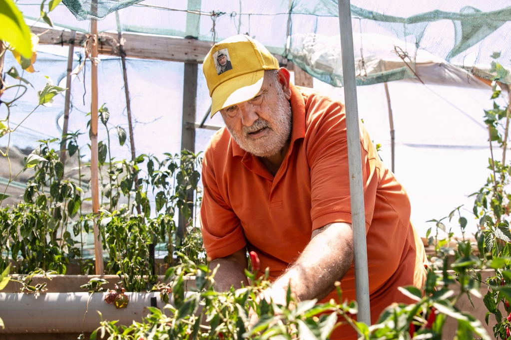 Palestinian refugees live in difficult conditions: many jobs are forbidden to them, their unemployment rate exceeds 60%. Faced with discrimination, trauma and a sense of confinement, gardens are a precious escape. “I’ve seen too many atrocious things in my life. So when I come up here, I feel like I’m facing the sea and I forget everything,” says Abdallah Mahmoud Aswheh. The veteran of Fatah, the political movement of Palestinian leaders Yasser Arafat and Mahmoud Abbas, shows his two scars. He lived through the Israeli invasion of Beirut in 1982 and the “war of the camps” between the Islamist militias of Amal, Hezbollah [1] and the Palestine Liberation Organization (PLO). “Working the land brings me peace and brings me back to my roots,” he says, showing us his peppers, eggplants and his loubié [beans], a yellow cap with the effigy of Yasser Arafat on his head.