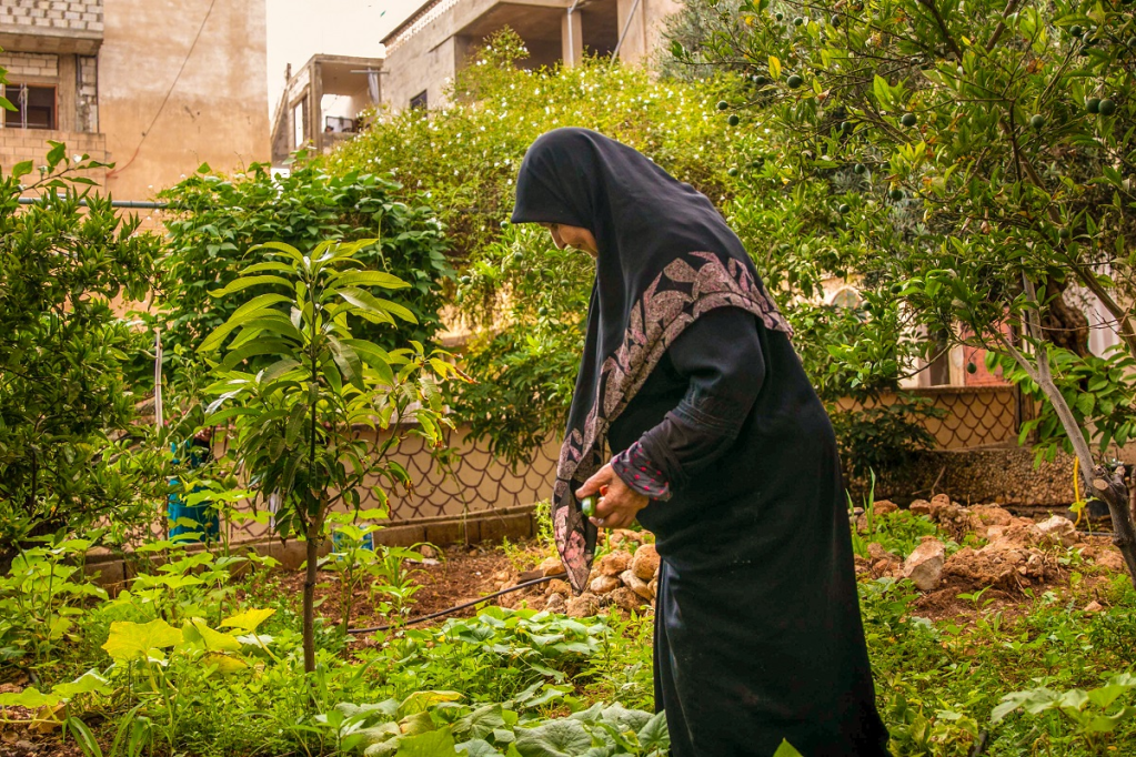 Maha and more than a hundred other people have set up gardens and vegetable plots in their homes with the help of a Syrian NGO, Jafra. For nearly three years, the roof of the NGO’s headquarters in Bourj el-Barajneh has been used as a laboratory for experimenting with watering, composting and even chicken breeding techniques. It’s simple: residents attend workshops and trainings, and then Jafra helps them set up containers, soil and seeds – and even composters and fresh water supplies – in their homes.