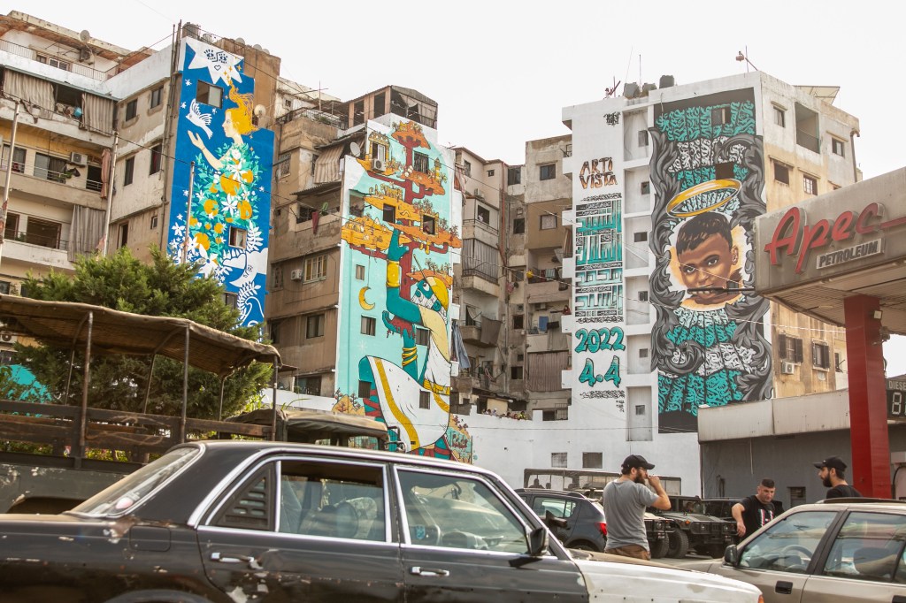 In the most marginalised district of Tripoli, the poorest city in the Mediterranean basin, grey and dilapidated buildings are covered in bullet holes. Only a few stand out with vivid colours and monumental street art murals – inaugurated last October by a French NGO, Artivista.