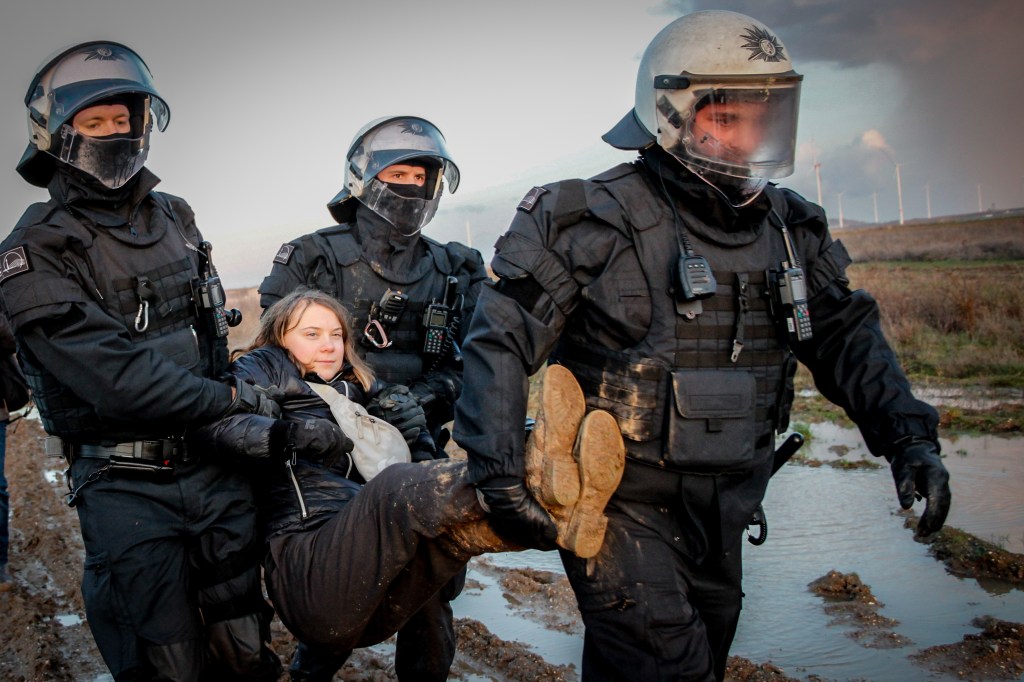 La pression n’est pas retombée : mardi 17, deux mines de charbon dans la région, toutes opérées par RWE, ont été envahies par des activistes d’Ende Gelände (une coalition anti-charbon) et mises à l’arrêt plusieurs heures. Un troisième cortège a été nassé au bord de la mine de Garzweiler 2 après avoir été chargé violemment par la police montée et des unités canines, à l’issue d’une course-poursuite de plusieurs heures dans une boue visqueuse. Greta Thunberg était de la partie, et les images de son arrestation ont fait le tour du monde.