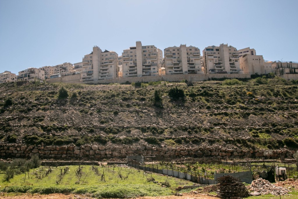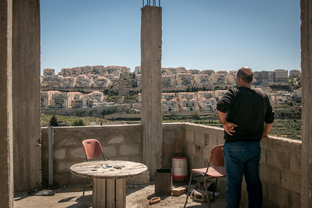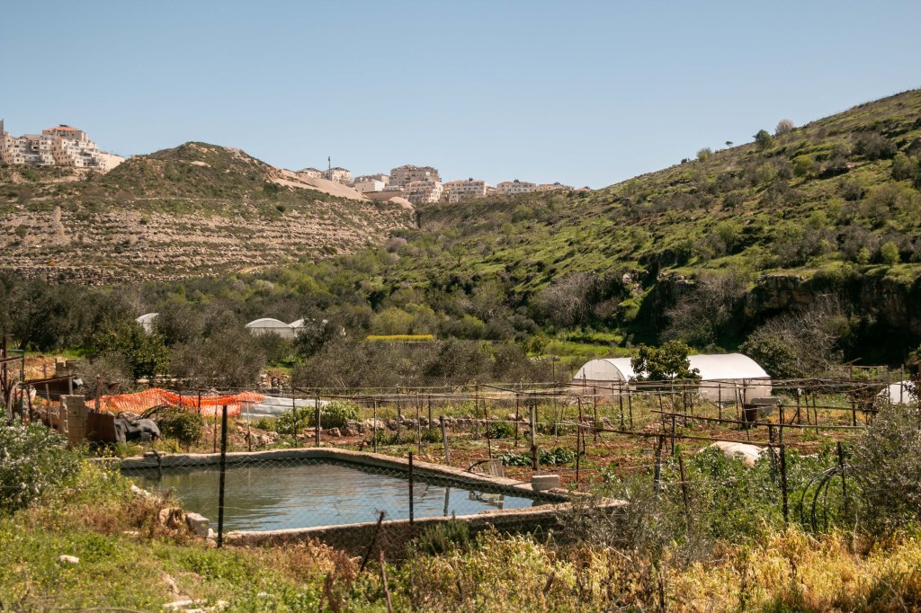 Au sud, les 60 000 colons, majoritairement des juifs hassidiques ultra-orthodoxes, de Betar Illit, colonie fondée en 1980. Au nord, la « ligne verte » qui trace la frontière entre Israël et la Cisjordanie, et la ville israélienne de Tzur Hadassah, construite en 1956 sur des villages palestiniens dépeuplés — et qui ressemble à s’y méprendre à une colonie. Ces enclaves font partie du bloc de 37 colonies de « Goush Etzion » autour de Bethléem, qui vise à isoler la ville de naissance de Jésus du reste de la Palestine. Ainsi, Wadi Fukin a perdu 87 % de ses terres. « Israël prévoit de construire une nouvelle route pour ses colons à travers la vallée : il ne nous restera que 1 500 dunam [150 hectares] de terrain », s’insurge Ibrahim Manasra.