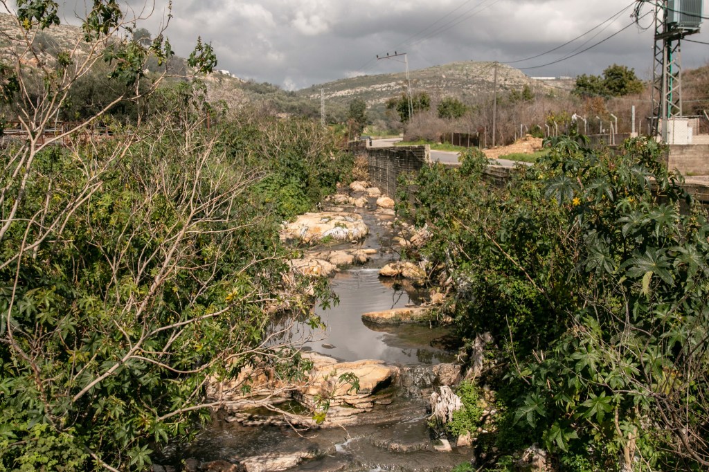 La rivière Ein al-Matwi, régulièrement polluée par les colonies israéliennes industrielles Burkan et Ariel, vue à Farkha. © Philippe Pernot / Reporterre