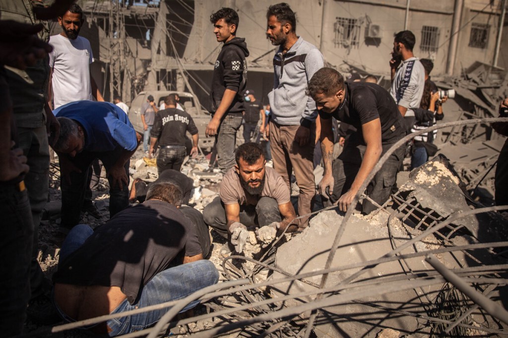 Sur les lieux d’une frappe israélienne près d’un hôpital de Beyrouth, le 21 septembre 2024, qui a tué dix-huit civils, dont plusieurs enfants, et détruit tout un pâté de maisons. Ici, le 22 octobre 2024. © Philippe Pernot / Reporterre
