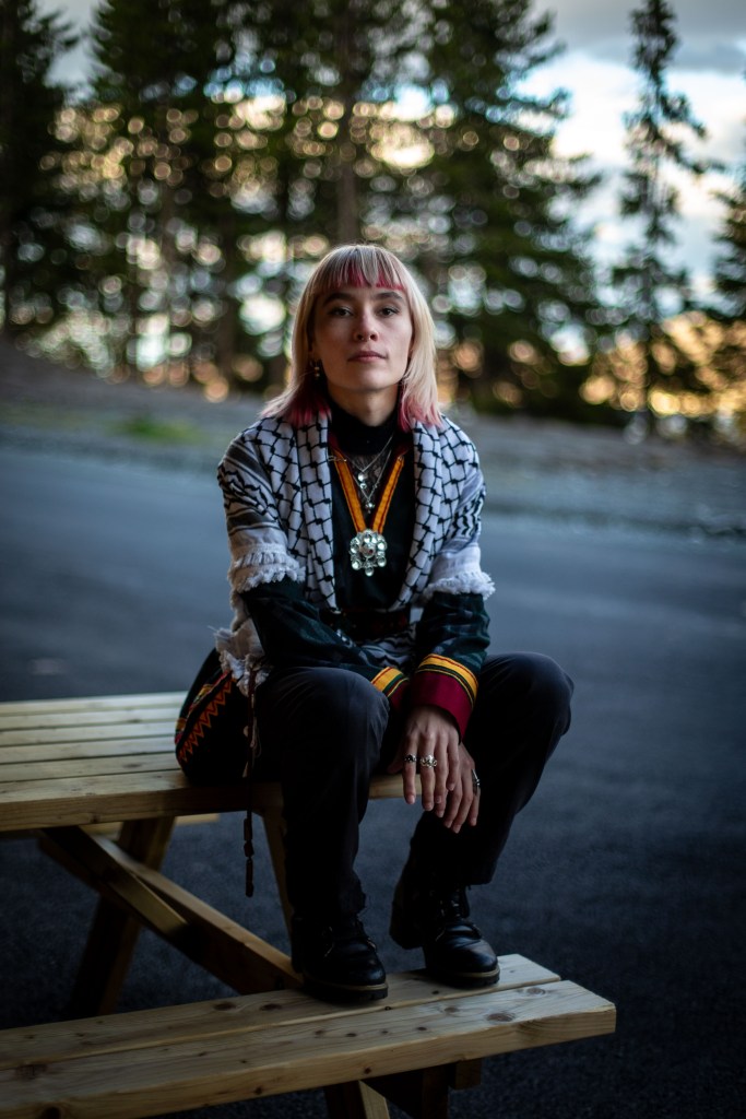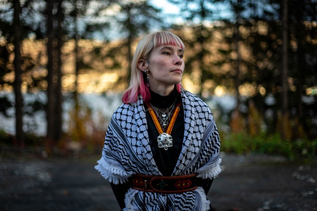 « Bien que ce qui soit arrivé à Gaza soit autrement plus brutal, nos peuples souffrent tous les deux du colonialisme, de l’effacement. Et nous résistons tous les deux, notamment en affirmant nos traditions », affirme Rebecka Ekeland, 22 ans, étudiante en histoire à Tromsø, membre du comité local de Students for Palestine et activiste sámie et kvène.