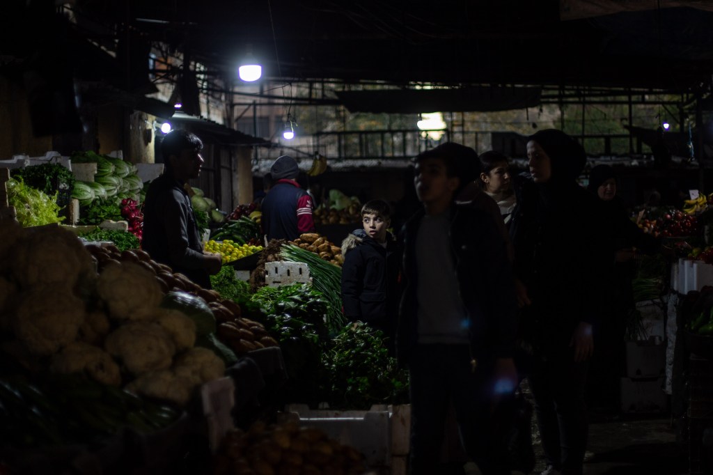 Après les affrontements du 6 octobre, comme toutes les routes étaient coupées, les étals du marché de l’est de Cheikh Maqsoud sont restés quasiment vides pendant deux semaines. Aujourd’hui, la situation est meilleure, mais les prix sont supérieurs à ceux des autres quartiers d’Alep, affirme Hassan Ali Mohammad, le directeur du marché.